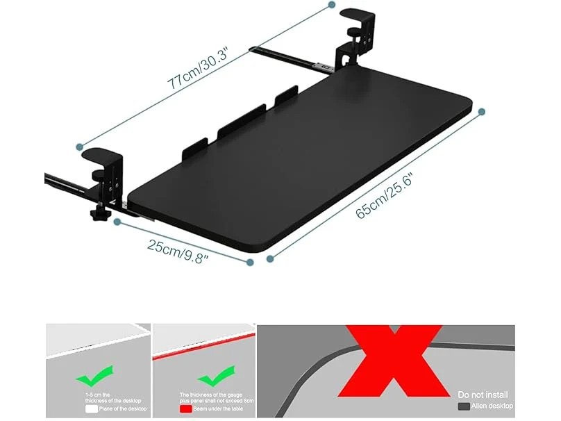 Ongeopend, Ownant Toetsenbordlade, 65 x 24 cm, toetsenbordlade, geen gaten, gestanst, pc-toetsenbord, uittrekbaar tot 30 kg (zwart), B0BG8C879V
