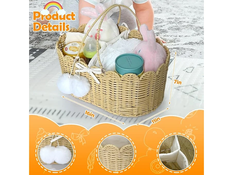 Ongeopend, in seal, Whemyreat Veelzijdige luiertas, organizer, handgemaakt rotan wikkelmand met 3 vakken, voor onderweg, luiertas voor meisjes, luiertas, draagbare luiertas, B0DK3DSVZM