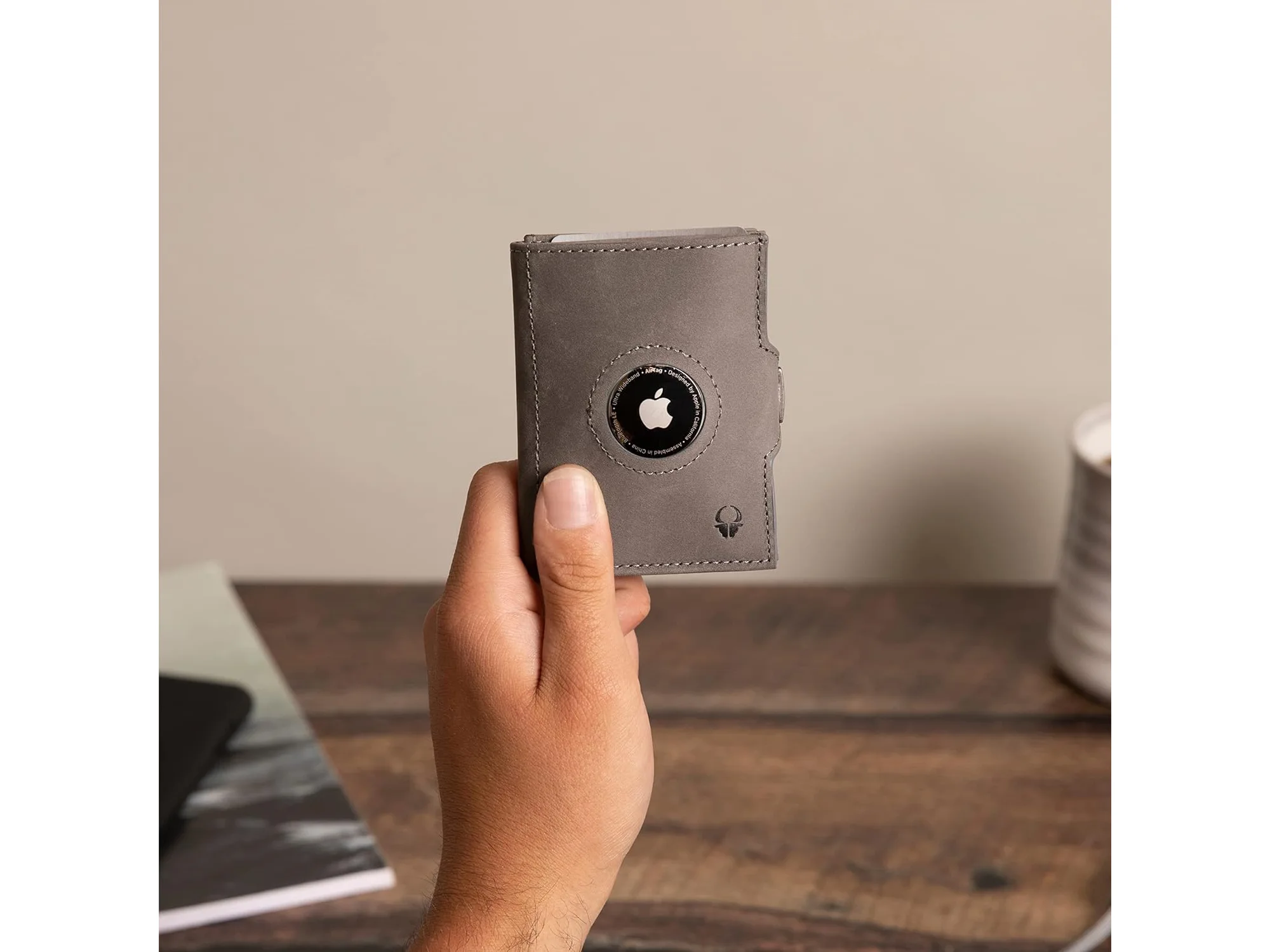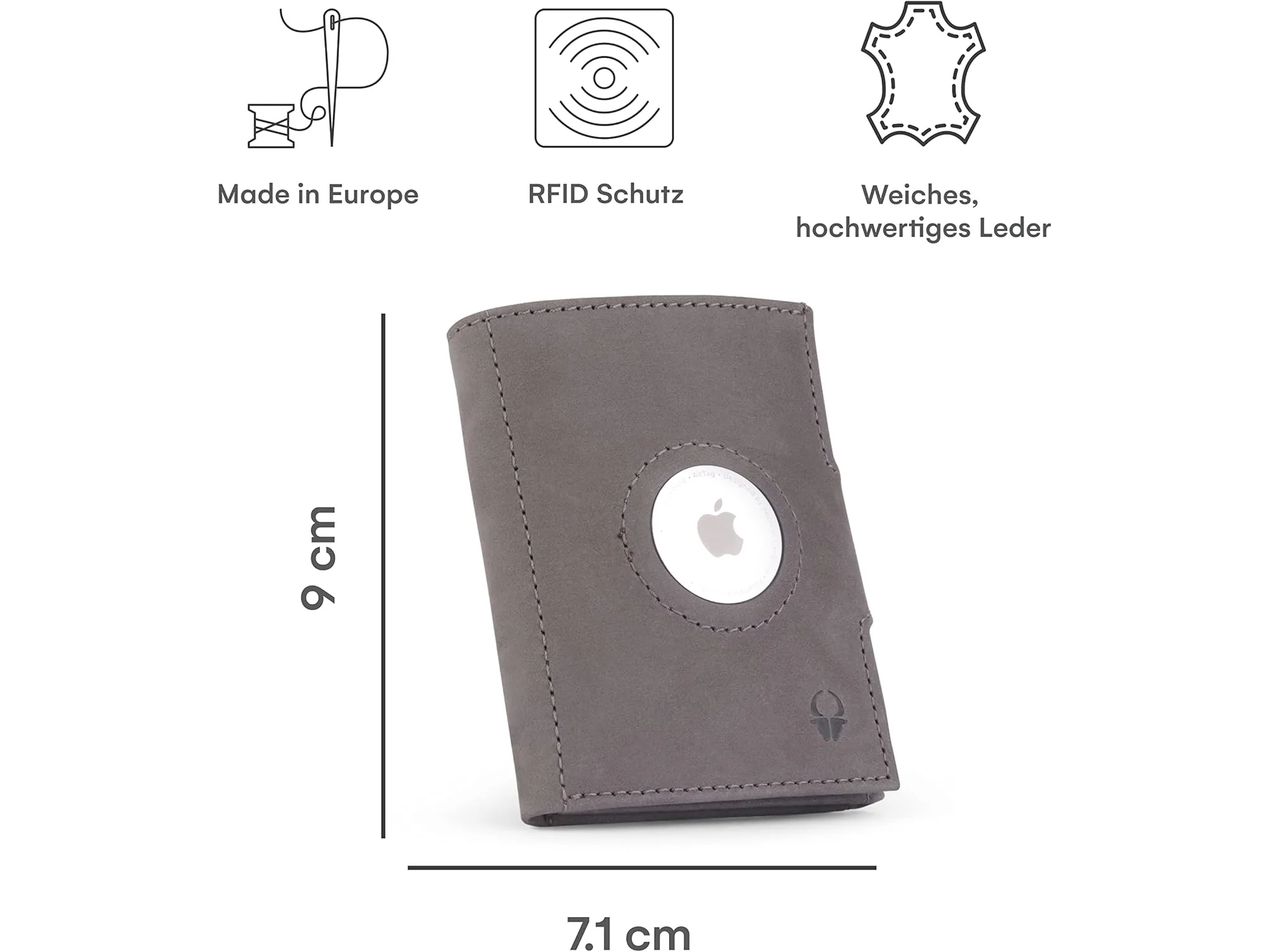 Ongeopend, ONBOLSO AirTag Wallet Air Portemonneehoes voor heren, 9 x 7 cm, leer, slim wallet met muntenvak en RFID-bescherming en kaartsleuven, compact formaat, vintage grijs B0B59Y7NXW