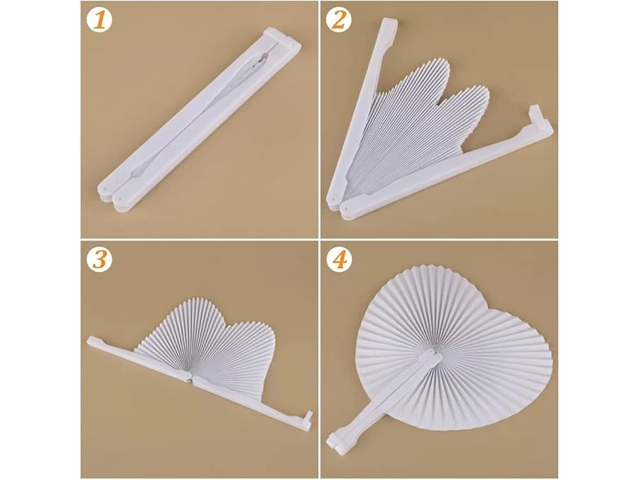 Ongeopend, SXUUXB Waaiers voor bruiloft, 100 stuks, papieren waaiers, handwaaier, wit, voor bruiloftsfans, bruiloftswaaiers, hartjes, zakwaaiers, vouwwaaiers voor doe-het-zelf, bruiloft, cadeau, B0CKMXM3WD