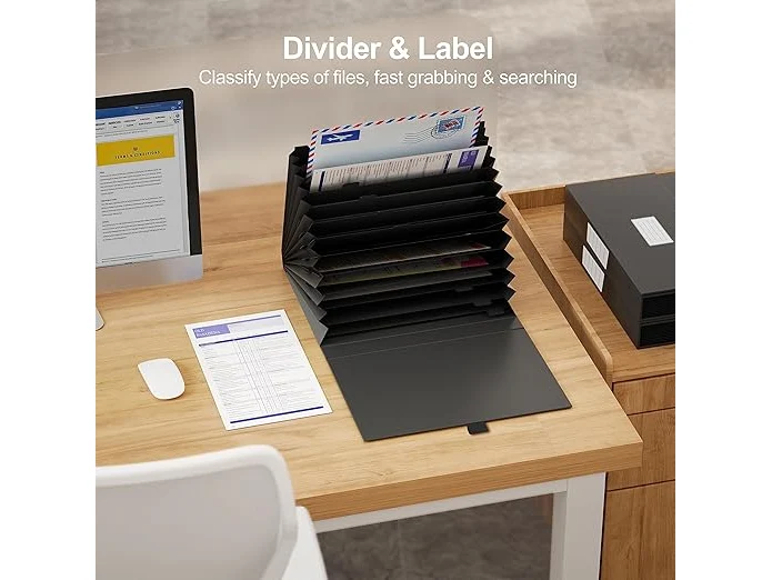 Ongeopend, in seal, JiaWei Waaiermap - Documentenmap A4 13 Vakken, Accordeon Map ordner organizer met magnetisch deksel, etiketten, Uitbreidende opbergmap A4 van 2250 g/m² extra sterk karton, waaiermap sorteermap- Zwart, B0C5LWLBR3