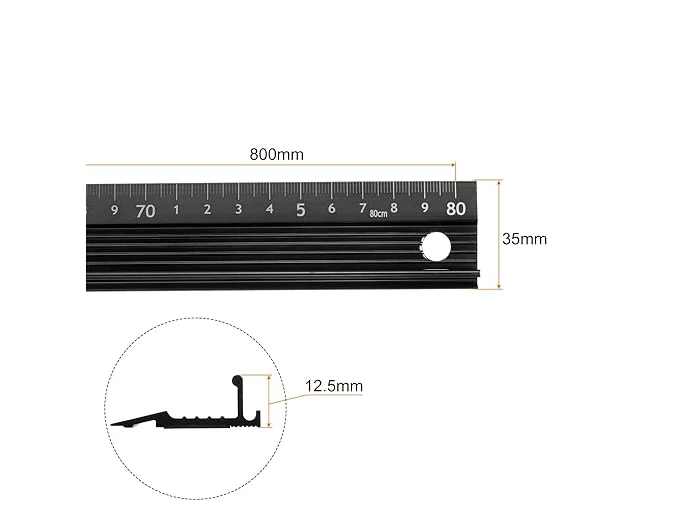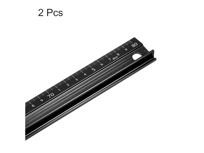 Ongeopend, sourcing map Metalen liniaal, 80 cm, metrische liniaal, meting van aluminiumlegering, antislip, beschermende liniaal, recht snijden, meetgereedschap met ophanggat voor snijden en meten, 2 stuks, zwart, B0C773M54S