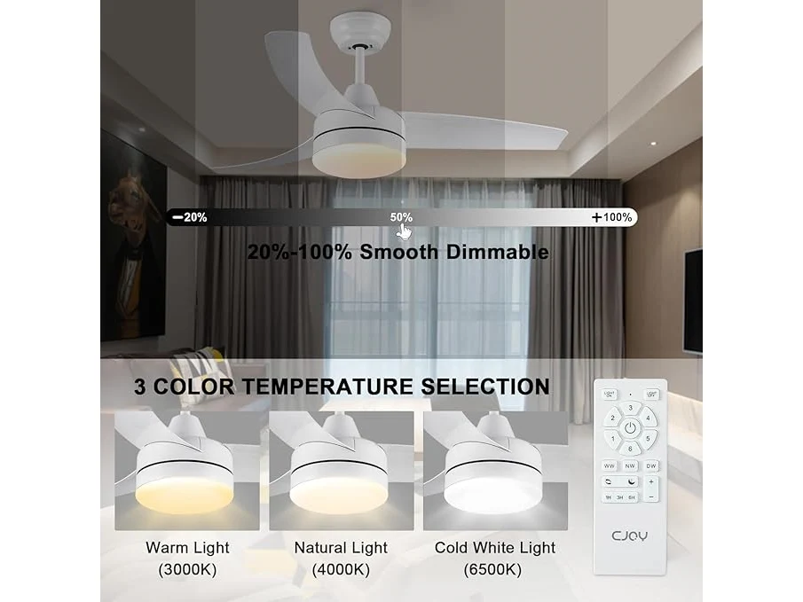 Ongeopend, in seal, CJOY Plafondventilator (132 cm), wit, plafondventilator met dimbaar licht, plafondventilator met afstandsbediening, messen, stil, DC, omkeerbaar, winter en zomer, 6 snelheden, timer, B0BLH92DHV
