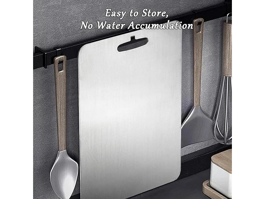 Ongeopend, Snijplank van titanium, 304 roestvrij staal, dubbelzijdig in levensmiddelenkwaliteit, snijplank, premium titanium snijplank voor vlees, kaas, fruit, groenten (46 x 30 cm), B0DKFFDTNC