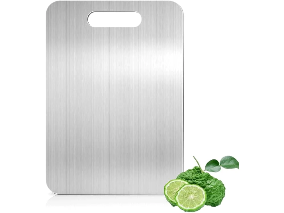 Ongeopend, Snijplank van titanium, 304 roestvrij staal, dubbelzijdig in levensmiddelenkwaliteit, snijplank, premium titanium snijplank voor vlees, kaas, fruit, groenten (46 x 30 cm), B0DKFFDTNC