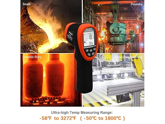 Ongeopend, ok, BTMETER pyrometer Laser Thermometer Pistool Hoge Temp Infrarood Thermometer Digitale IR Temperatuurmeter voor industriële HVAC Oven Forge Gieterij Gietoven 【Niet voor mensen】, B07V5GT3KG