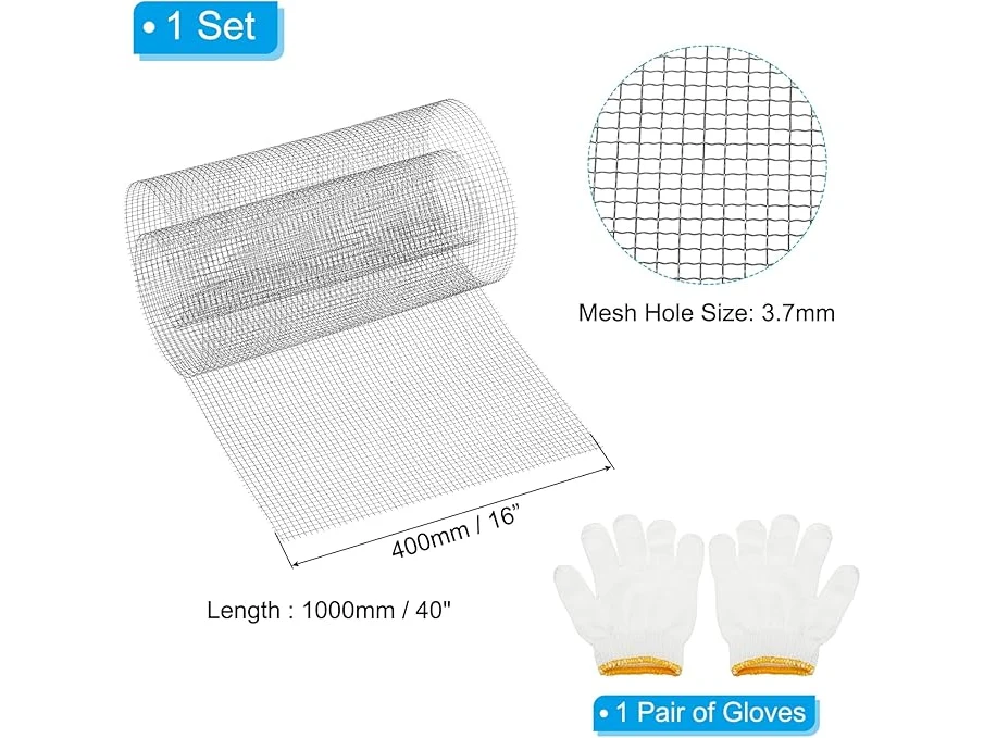 Ongeopend, in seal, PATIKIL 40 "L x 16" W Geweven gaas, 6 Mesh 304 Roestvrij Staal Luchtrooster Filter Scherm met Handschoenen voor Venster Beveiliging Vent Cover Filtratie Dieren Hek, B0CVX893B5
