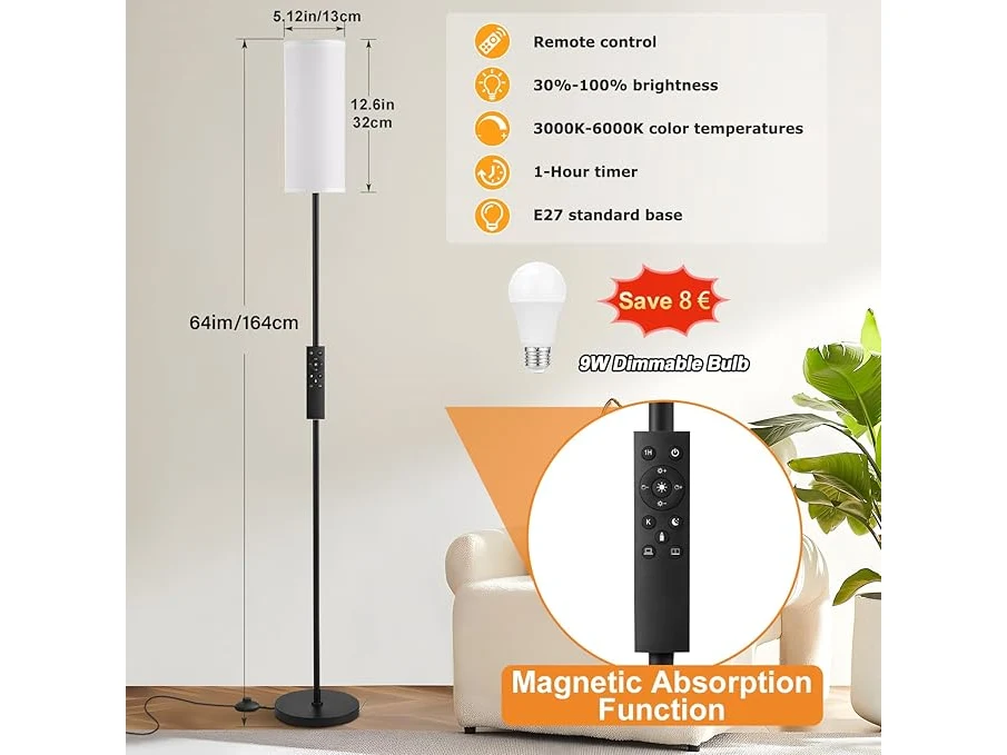Ongebruikt, getest en werkend, volledig, ok, PreeOtti Vloerlamp voor woonkamer, moderne dimbare vloerlamp, 4 kleurtemperaturen, linnen lampenkap, vintage lamp voor woonkamer, slaapkamer, kantoor (lamp inbegrepen),B0DM5BG68X