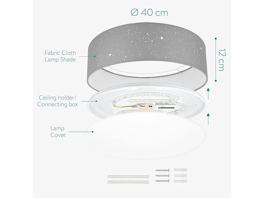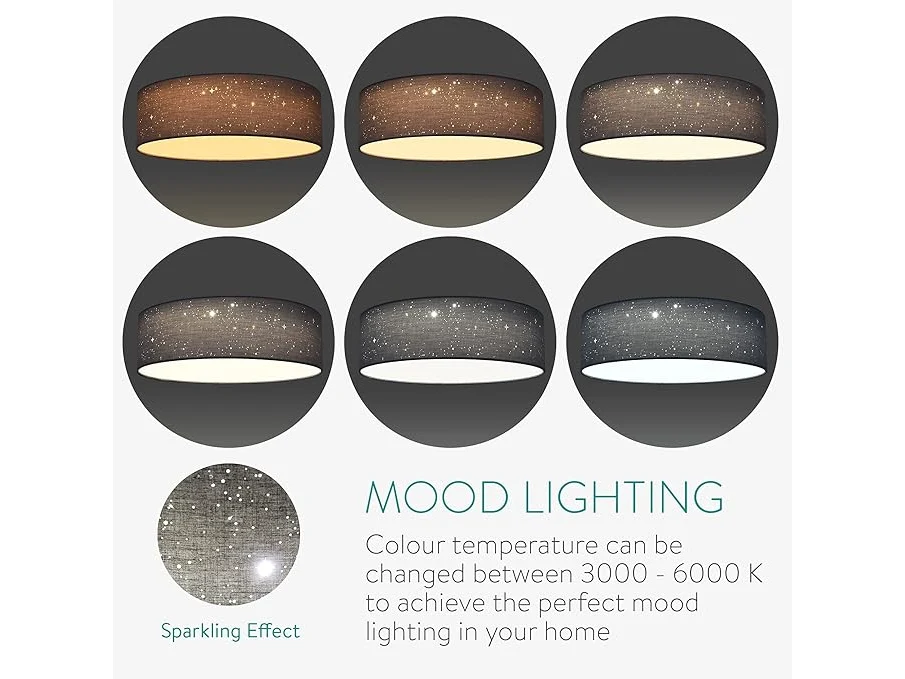 Ongeopênd, in seal, Navaris LED plafondlamp rond 22W Ø 40 cm - Stoffen plafonnière met warmwit licht & sterreneffect - Dimbare LED lamp met afstandsbediening - Lichtgrijs, B08HQY3P9V