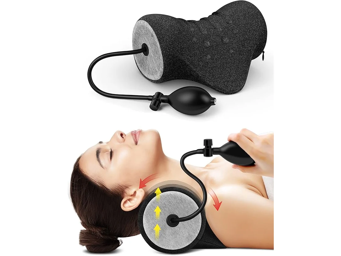 Minieme gebruikssporen, werkt, zonder opbergzak, Nek- en schouderontspanner, draagbaar cervicale tractieapparaat nekbrancard, nekhouding corrector chiropractie kussen voor TMJ pijnverlichting en cervicale wervelkolom uitlijning, B0BLSNSLH1