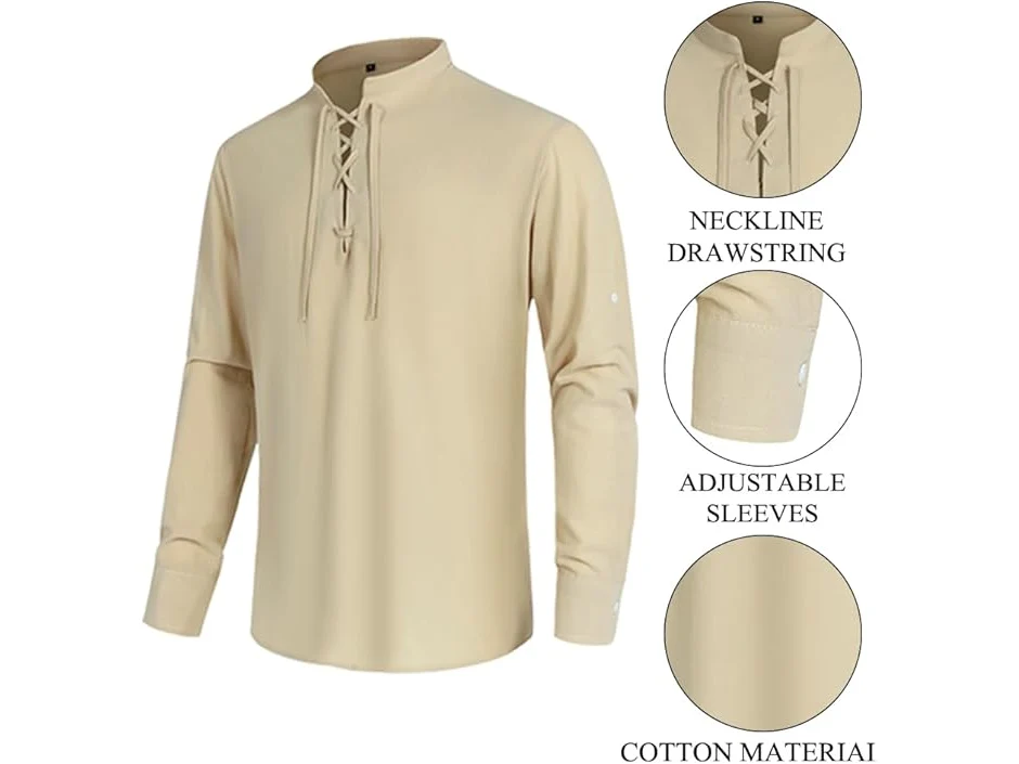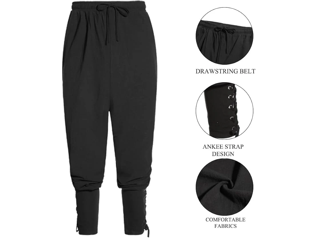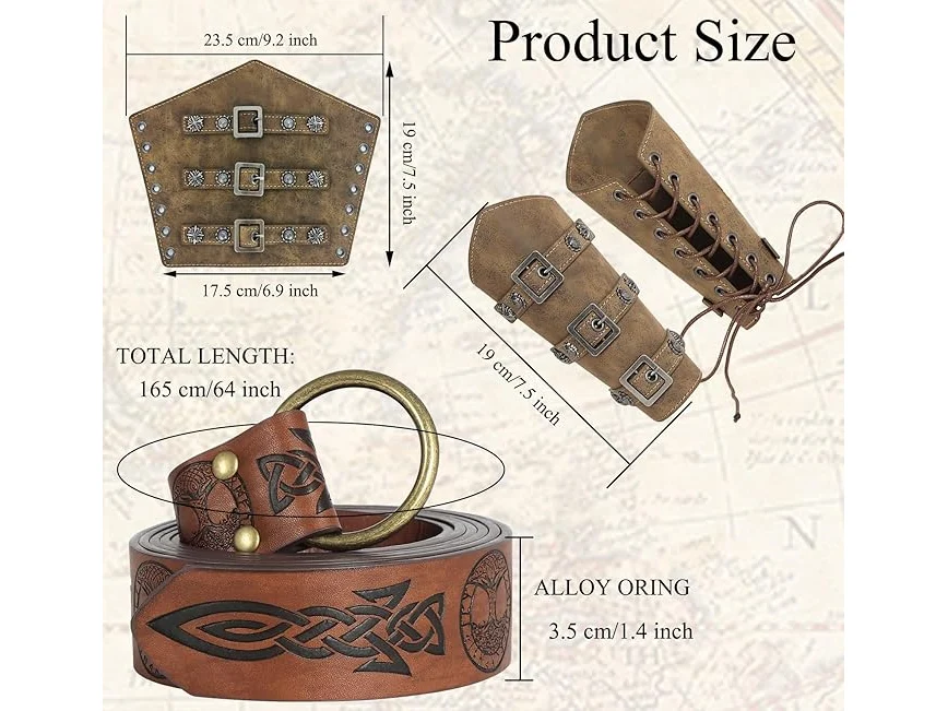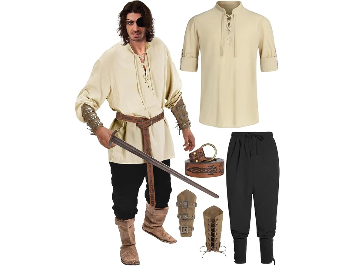 Ongebruikt, volledig, ok, Geplaimir Middeleeuws kostuum voor heren, Viking, renaissance, victoriaans, piraten, steampunk, cosplay, veterhemd, top met accessoires, Vikingbroek, PU-leder, O-ringriem,B0CMV49SLC