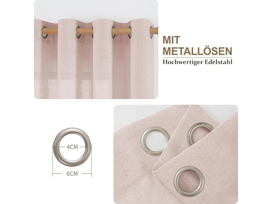 Ongeopend, CUCRAF Gordijn van echt natuurlijk linnen, met oogjes, 140 x 245 cm (b x h), oudroze, 2 stuks, decoratie, woonkamer, modern, slaapkamer, kantoor, comfort linnen gordijn, B0CKDYVLV5