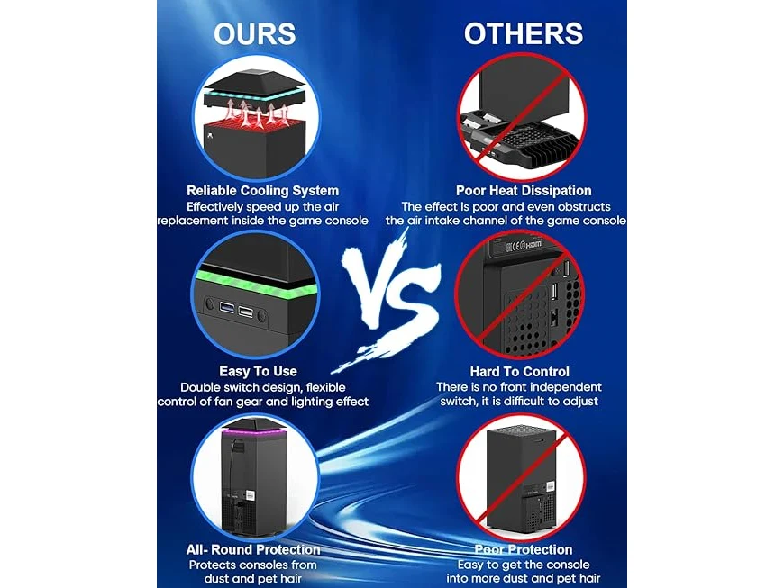 Ongeopend, in seal, Koelventilator voor Xbox-serie X met stofhoes, Geluidsarm 3 niveaus instelbaar snelheidskoelventilatorsysteem, Extra 2 USB-poort, RGB LED-licht voor Xbox Series X-accessoires koeling, B0B2NNDY2Q