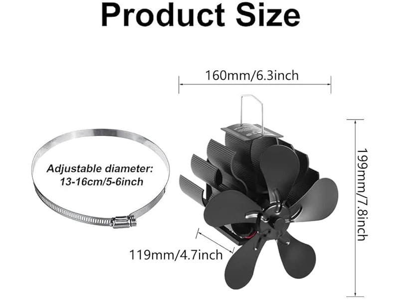 Ongeopend, ok, Open haardventilator, 5 bladen, warmteaangedreven kachelventilator, houtkachelventilatoren voor kachels en open haarden, stille warmteaangedreven open haardventilator, B0BJBJ3RS1