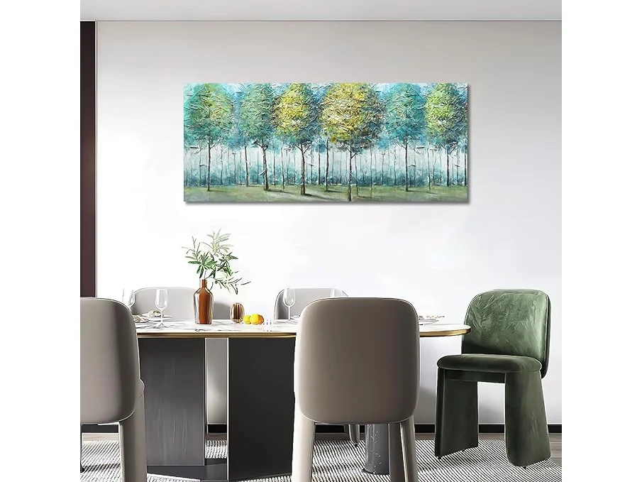 Ongeopend, in seal, Blauwgroene bosboom ingelijste canvasprint Modern landschapsschilderij Canvaskunst Moderne schilderijen Foto op canvas Poster Wanddecoratie Woonkamer Slaapkamer Restaurant 50x120cm, B0D28NKJXK