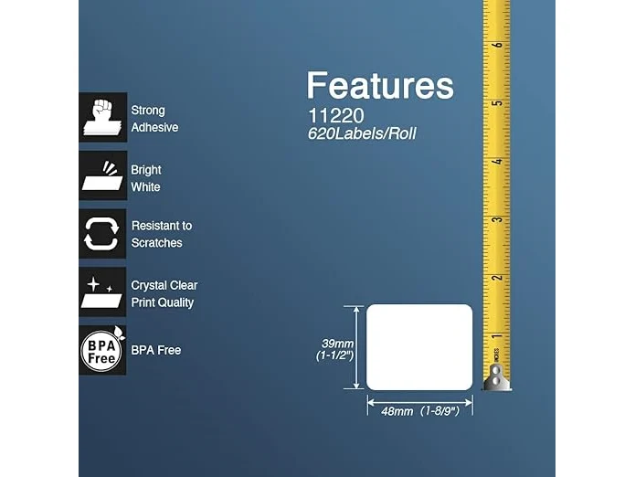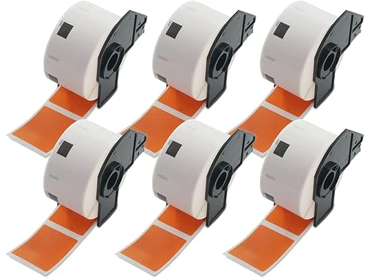 Ongeopend, in seal, BETCKEY - Gekleurde Etiketten Vervanging voor Brother DK-11220, 39mm x 48mm, 3720 Multifunctionele Etiketten(Oranje) Compatibel met Brother QL-etiketprinter, 6 Rollen, B0BTSBMSVR