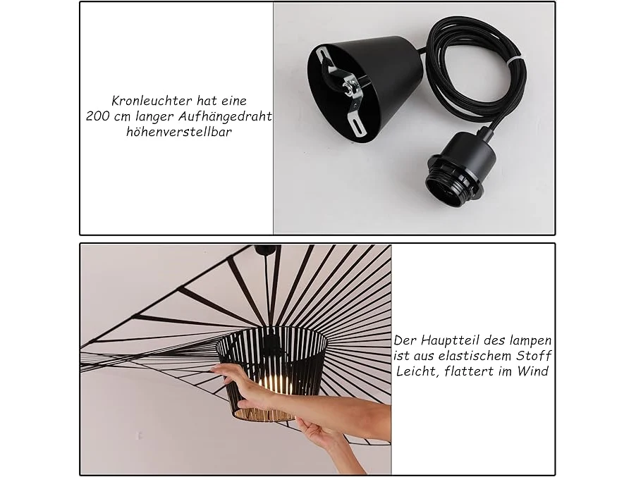 Minieme gebruikssporen, getest en werkend, ok, CHNB® Vertigo Lamp Zwart 140 cm Moderne Vintage Hanglamp Hanglamp Geschikt voor Eettafel Woonkamer Slaapkamer Kroonluchter Lampen (Diameter 140 cm), B0BXSRRBGL