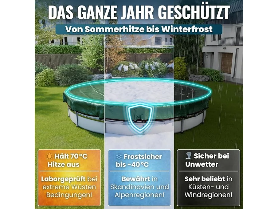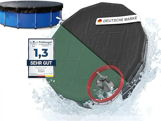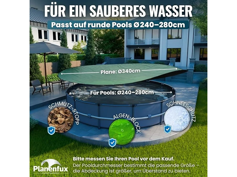 Ongebruikt, ok, Planenfux® Zwembadafdekking rond 244 cm (voor zwembaden met een diameter van 240-280 cm), 2-in-1 zwembadzeil van 200 g/m² PE-materiaal, zwembad zonnezeil voor zomer en winter afdekking, B0D8HZDPFD