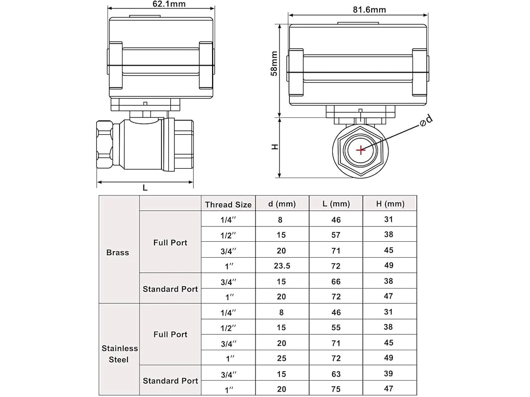 Minieme gebruikssporen, ok, U.S. Solid Gemotoriseerde kogelkraan 1/4 "roestvrijstalen kogelkraan met volledige poort, 9-24V AC/DC en 2 draad automatische retourinstallatie, B09993BMZ5