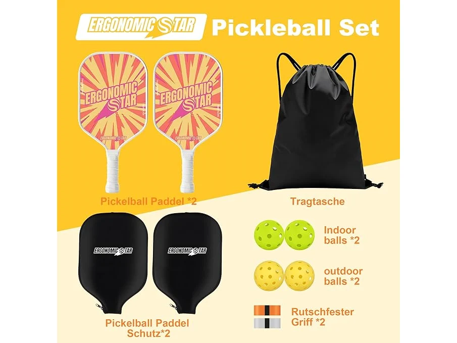 Ongeopend, ok, Ergonomicstar Pickleball racketset, glasvezel pickleball racket met 4 ballen en draagtas, peddelbescherming, lichte pick-up rackets voor beginners, binnen en buiten, B0F9DLJPM9