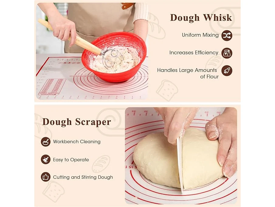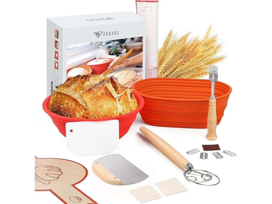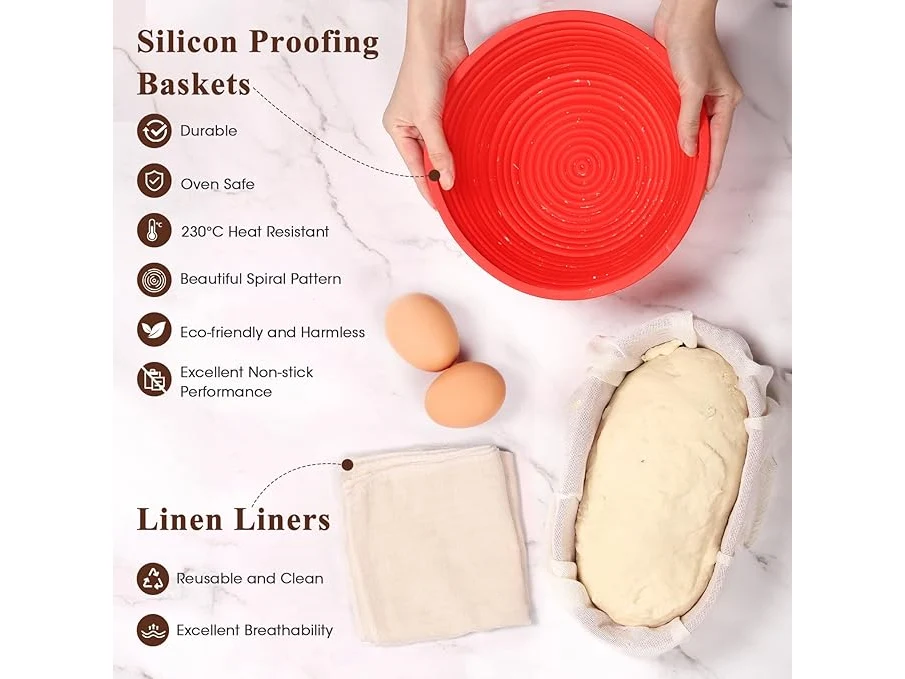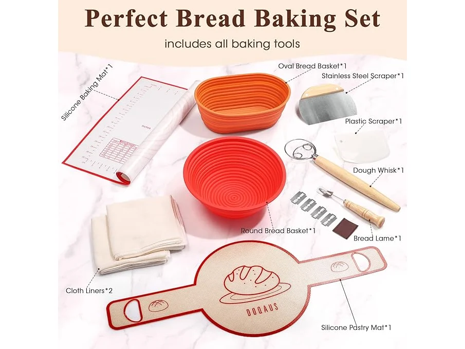 Ongeopend, ok, DOQAUS Set rijsmanden 2024 van siliconen, opvouwbaar, gemakkelijk te reinigen, voor het bakken van brood (1 ovale gistingsmand, 1 ronde gistingsmand, 1 Deense garde, 2 kaarten, B0CYL3BMY3