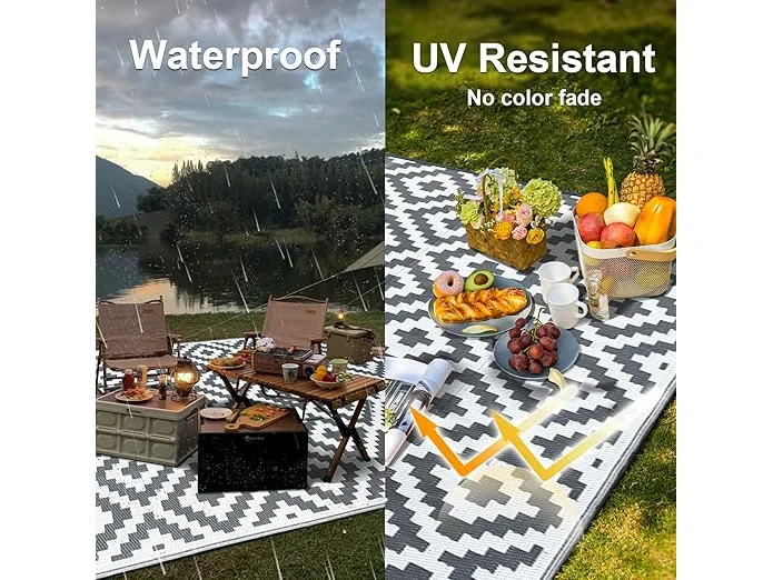 Ongeopend, in seal, CHOSHOME Buitendeken Waterdicht Tuindeken 150x240CM Campingdeken UV-bestendig Draagbaar Tapijt Makkelijk Schoonmakend Deken Buiten Binnen Gerecycleerd Plastic Deken Balkondekens Strand BBQ Grijs, B0BV6FZ3VJ