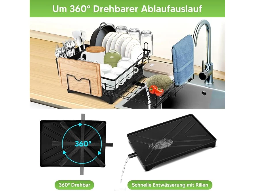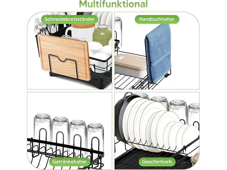 Ongeopend, Afdruiprek voor servies met afdruipbak, afdruiprek van roestvrij staal, uitbreidbaar afdruiprek, afdruiprooster voor spoelbak met gebruiksvoorwerpenhouder, snijplankhouder, bekerhouder, B0D226FL55