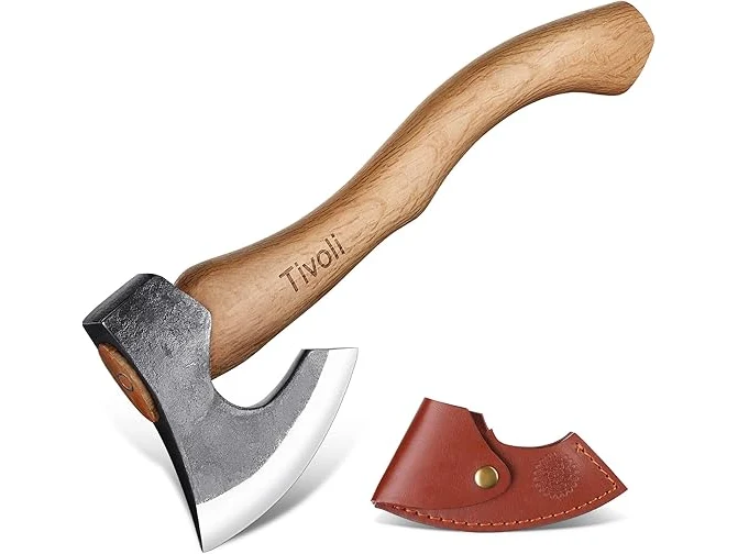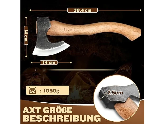 Ongebruikt, volledig, ok, TIVOLI survivalbijl, 38 cm, hoogwaardige outdoor bijl voor houten kloofbijl, handgesmede Viking-bijl met ergonomische houten handvat, kloofbijl met schede, voor tuin en bos, B0CG8T2Z2C