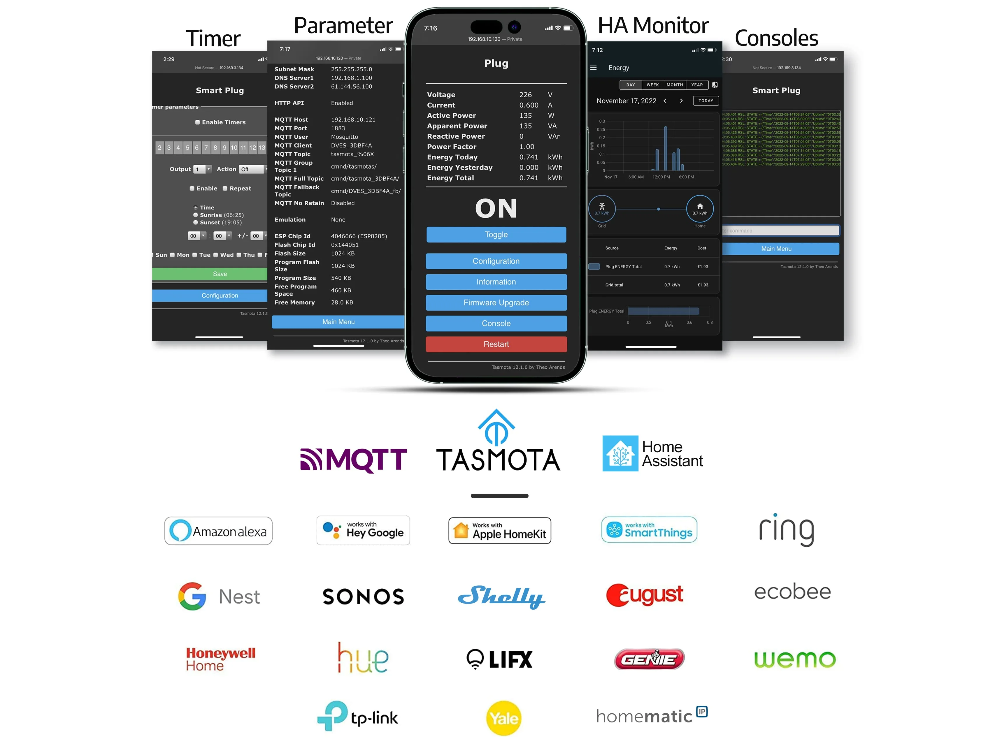 TASMOTA ESP8266 Stopcontact 16A, CURRYSMARTER stroommeter voor mini-stopcontact, WLAN ESP8266 stekker, stroommeter, timer, werkt met MQTT, Domoticz, ioBroker Home-Assistant, Google Alexa, 2,4 GHz (2 stuks), B0BKQP5KH2