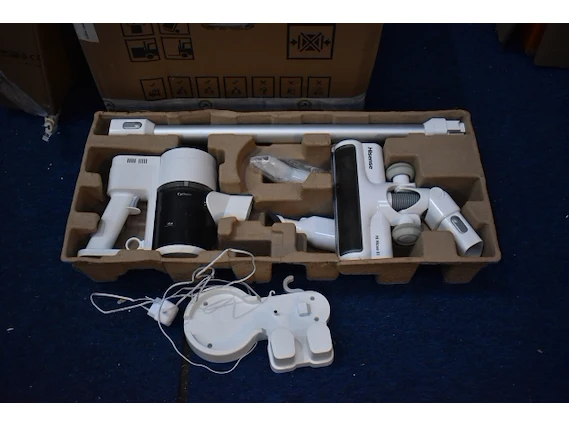 Gebruikssporen, getest en werkend, volledig, ok, Hisense HVC6133W steelstofzuiger, draadloze elektrische bezem, 2-in-1, zakloze stofzuiger, accu 21,6 V, geluidsniveau 78 dB, absorptie 135 W, ledlampen voor, gemotoriseerde borstel, B09SJ2QPPK
