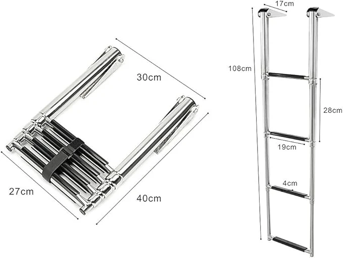 Ongebruikt, ok, KAOLALI Telescopische ladder, roestvrij staal 2 3 4 stappen opvouwbare instapladder voor boot jachtschip (4 stappen)