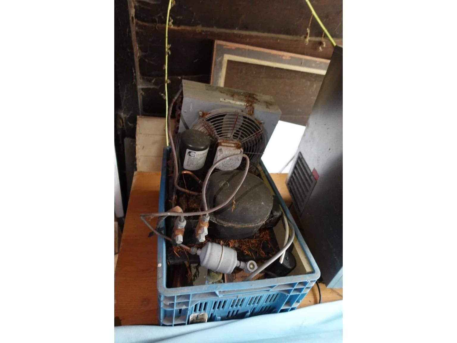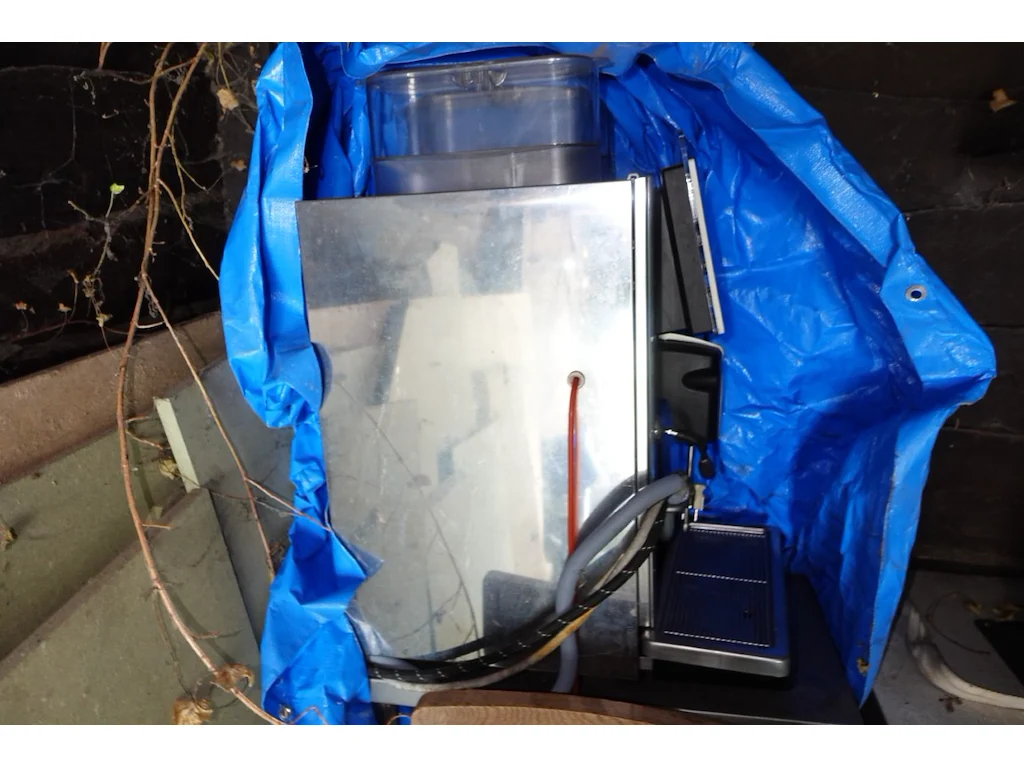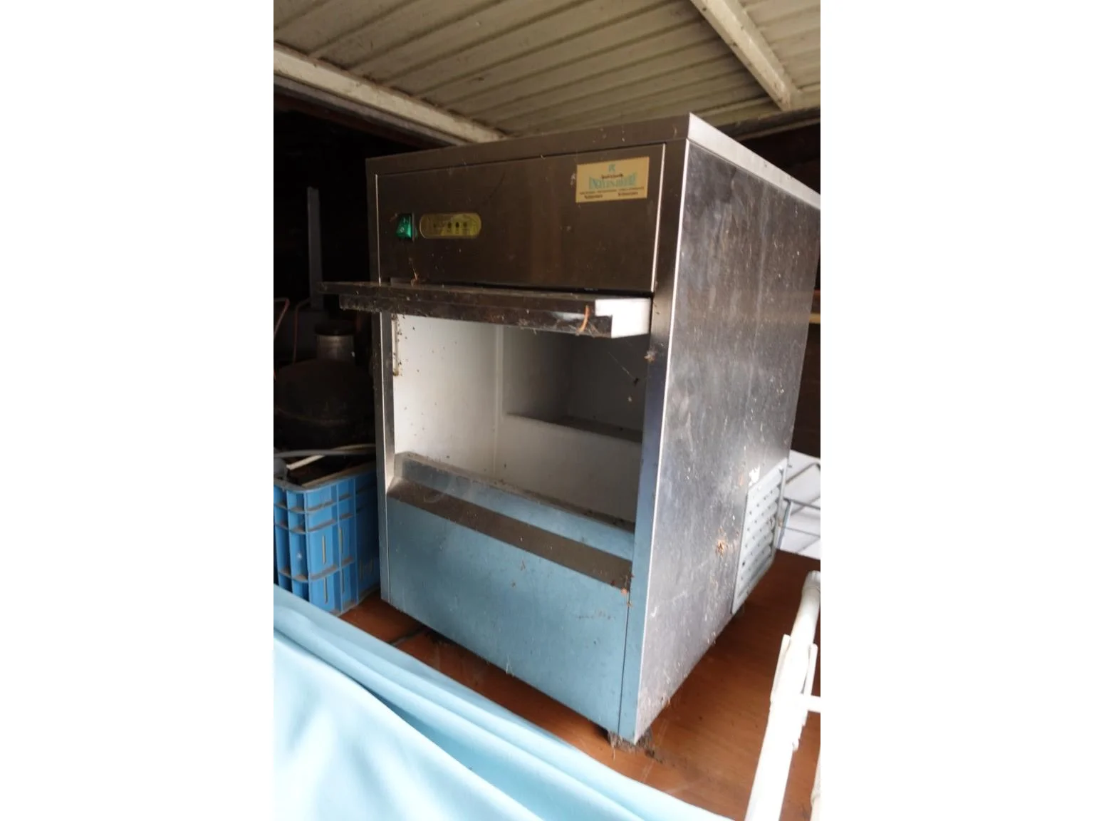 Oa: grasmachine, inox ijsmachine (werking onbekend), inox koffiestoetel (werking onbekend), diverse tafels en stoelen, houten planken … alles moet mee<br /> locatie: Buiten