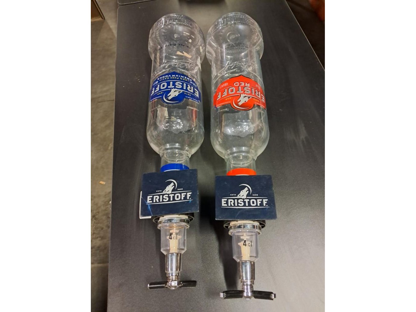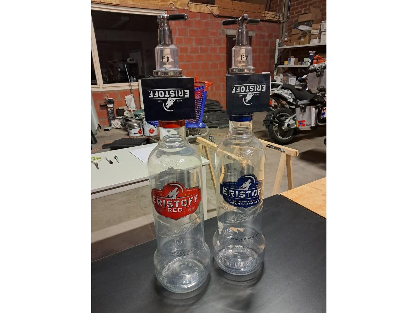 Grote flessen + houder v vodka eristoff 2 x 65 cm