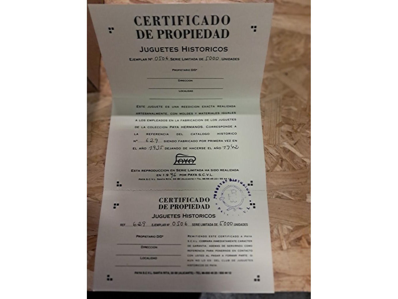 Grote boot in blik met certificaat (380mm)