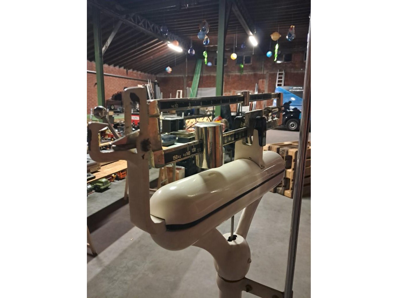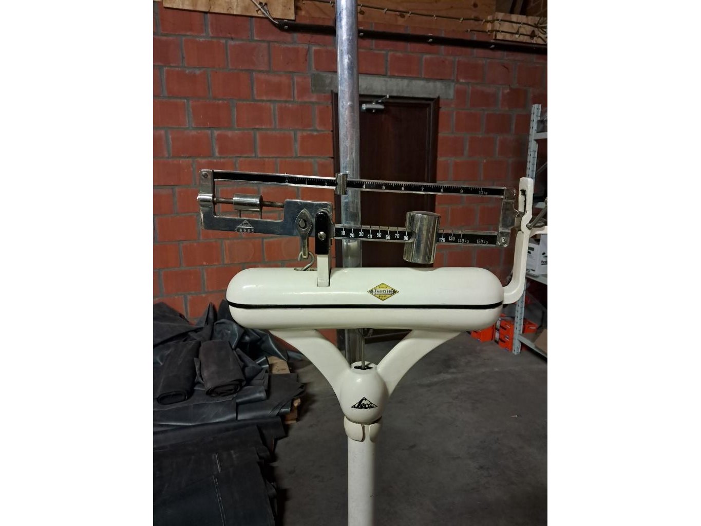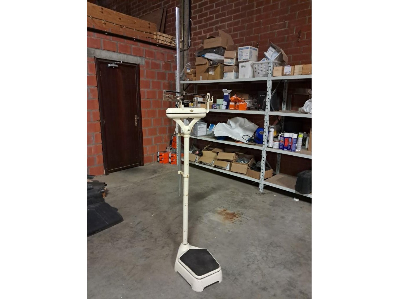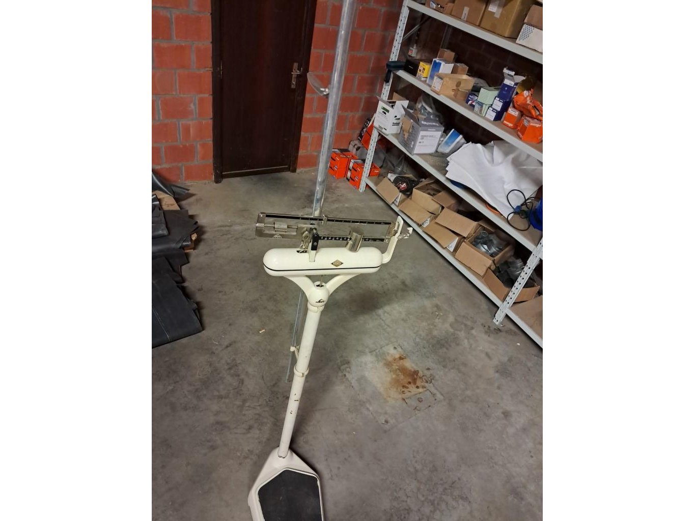 Zeer oude personenweegschaal+meetlat ziekenhuis