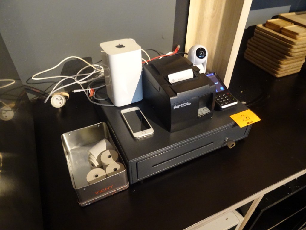 Kassalade, camere, bankcontact, etiketprinter, iphone, ...<br /> locatie: Toog