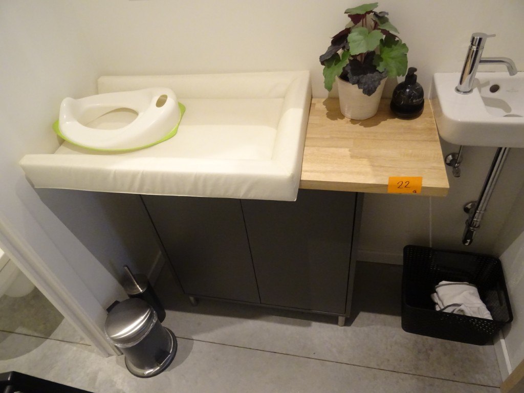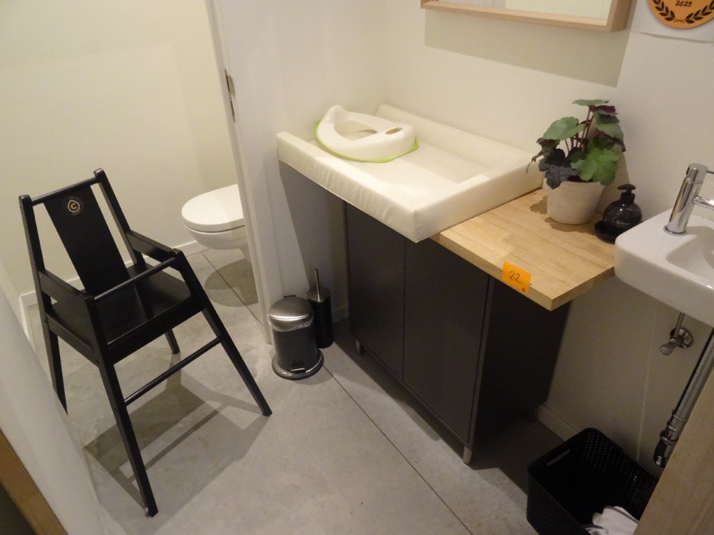 Ladekastje + spiegel, kinderstoel, babykussen, vuilnisbakje, ...<br /> locatie: WC