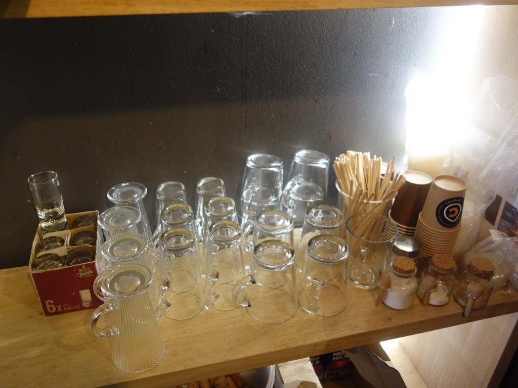 Oa. tassen, theetassen, onderbordjes, lepeltjes, ...<br /> locatie: Zaal