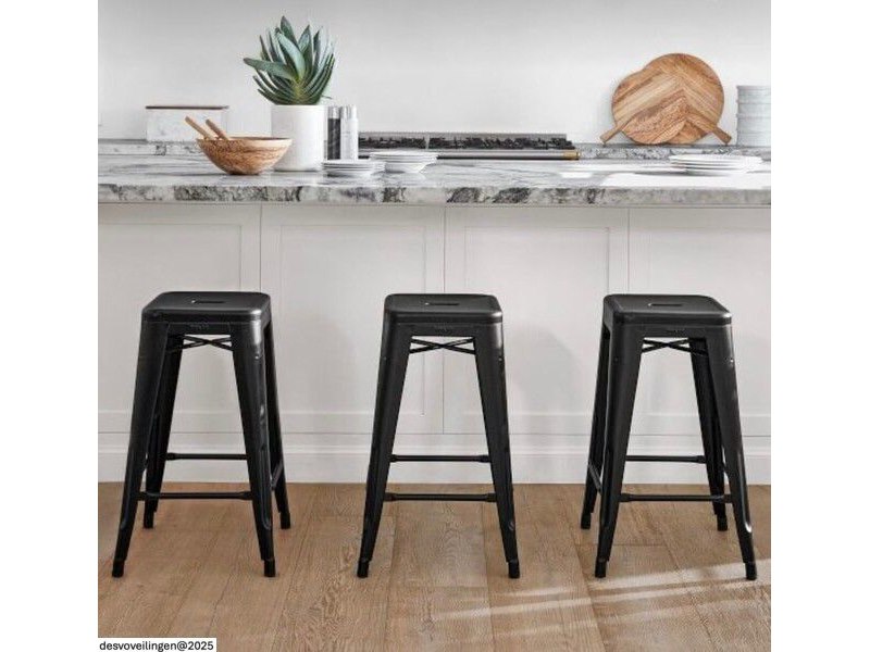 Ongeopend, 3 stuks barstoel zwart metaal - stapelbaar - Tolix model - zithoogte 66cm
