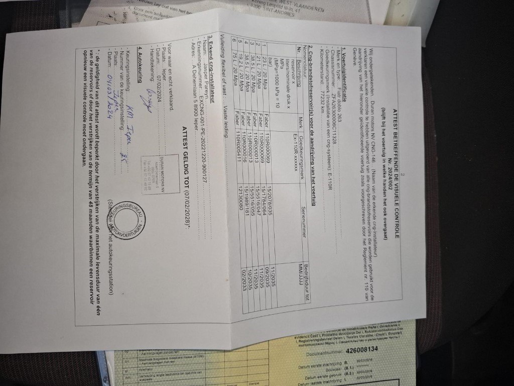 1ste inschrijving: 30/03/2016<br /> Chassis VIN: ZFA26300006C11328<br /> Kilometerstand: 97.613 km<br /> Motorinhoud: 1368 cc<br /> Motorvermogen: 88 Kw<br /> Brandstof: CNG (+benzine)<br /> Euronor: Euro 6b <br /> Inschrijvingsbewijs: OK<br /> Gelijkvormigheidsattest : OK<br /> Sleutels : 2<br /> Opmerking Compressieverlies op 2 cilinders - motor draait niet meer. Wagen rijdt niet meer. Hoge herstellingskosten om wagen opnieuw operationeel te krijgen.