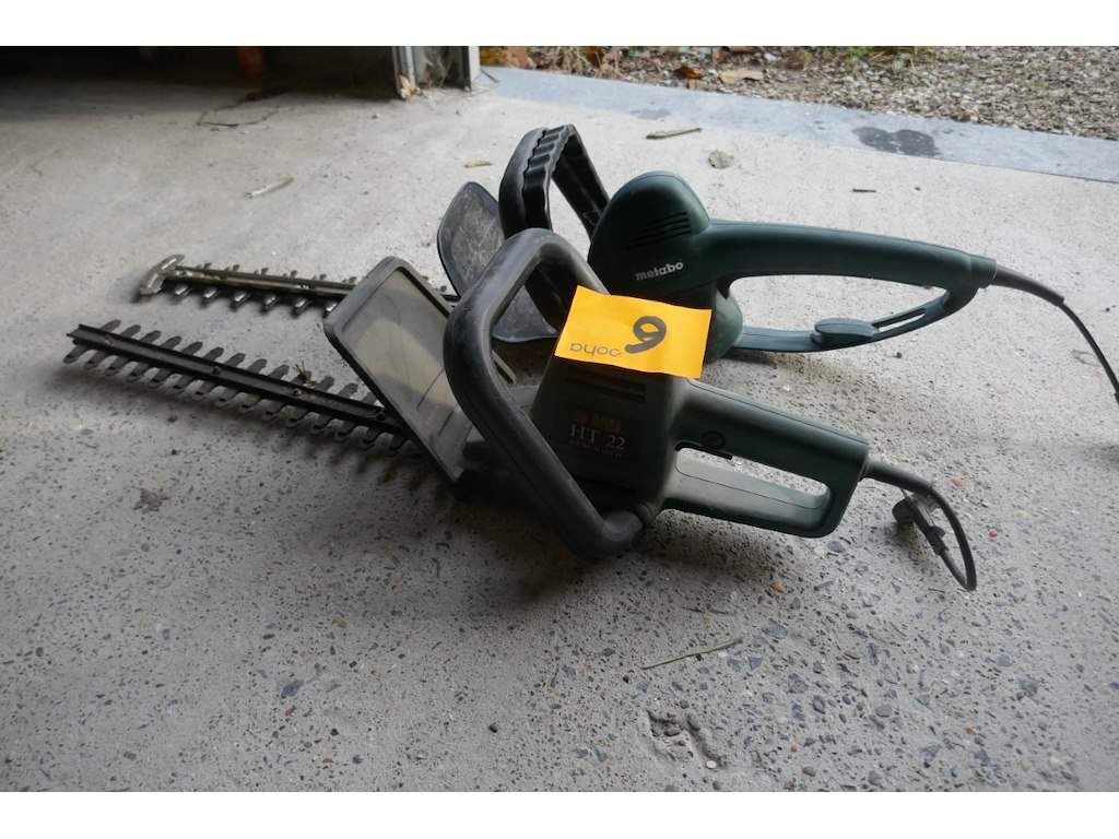 2 elektrische heggenscharen<br /> *merk : METABO / BLACK & DECKER<br /> *model : HS 45 / HT 22