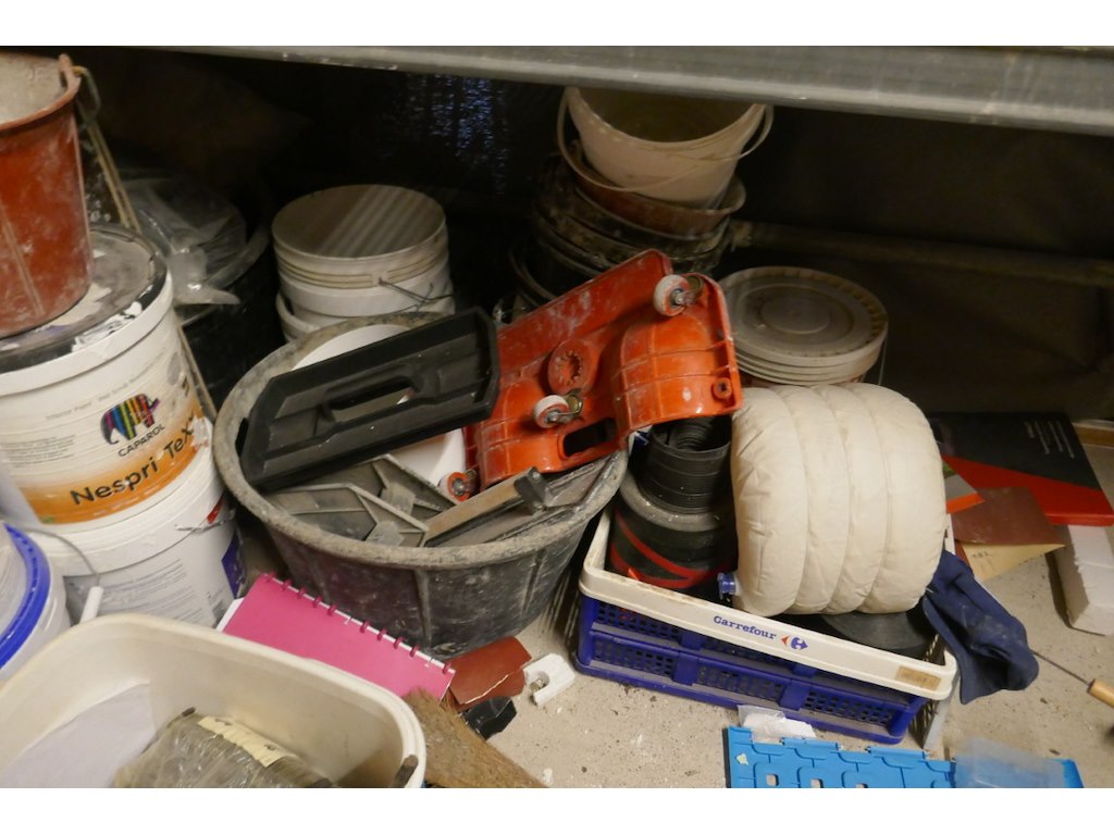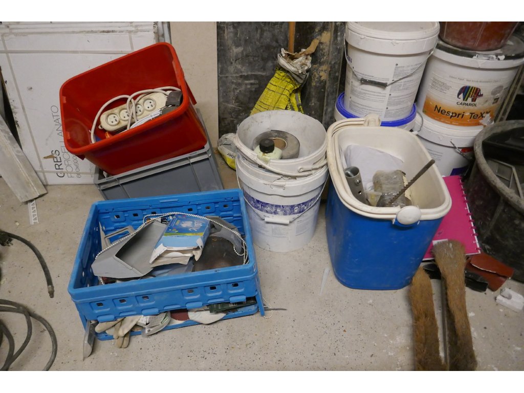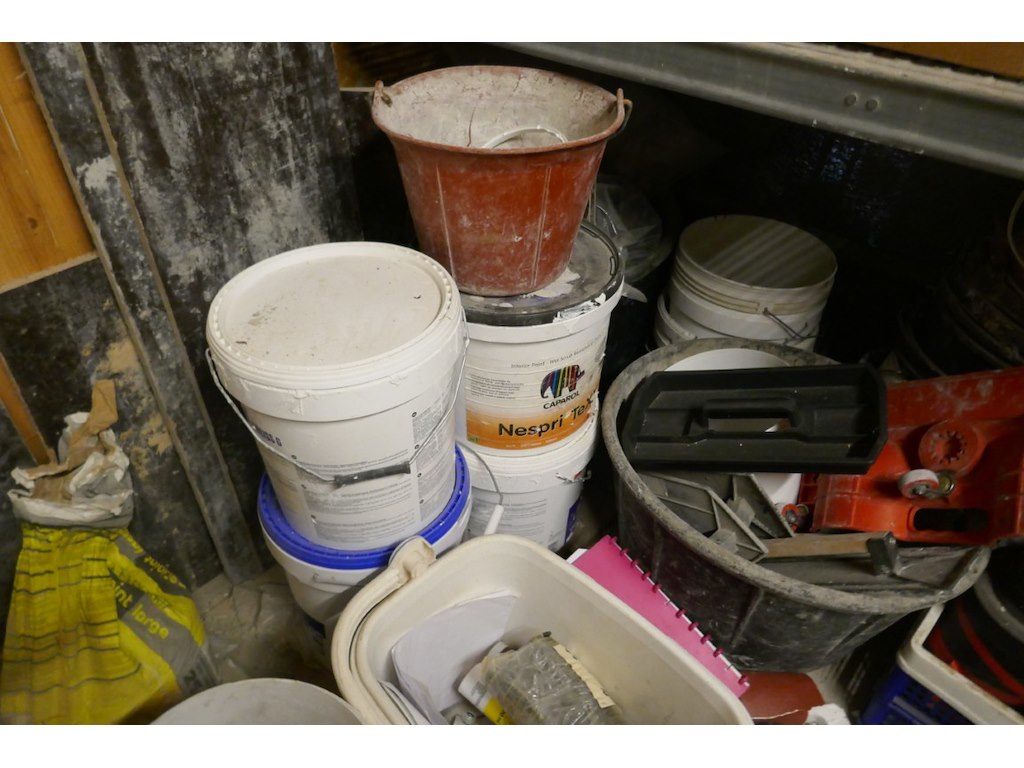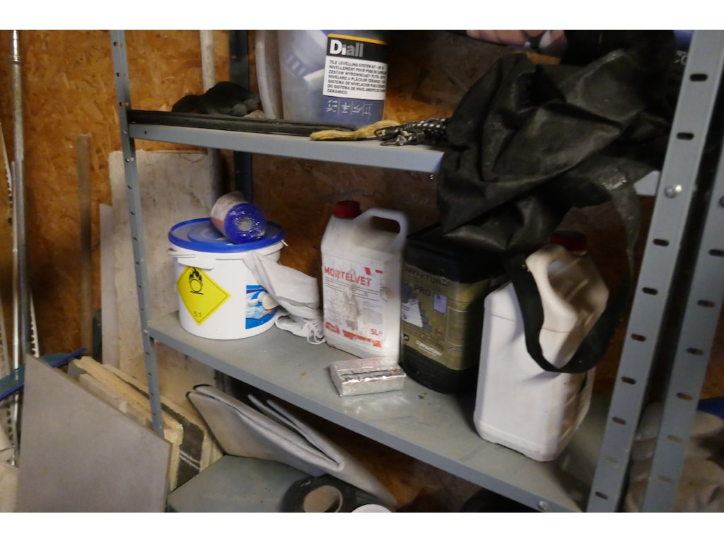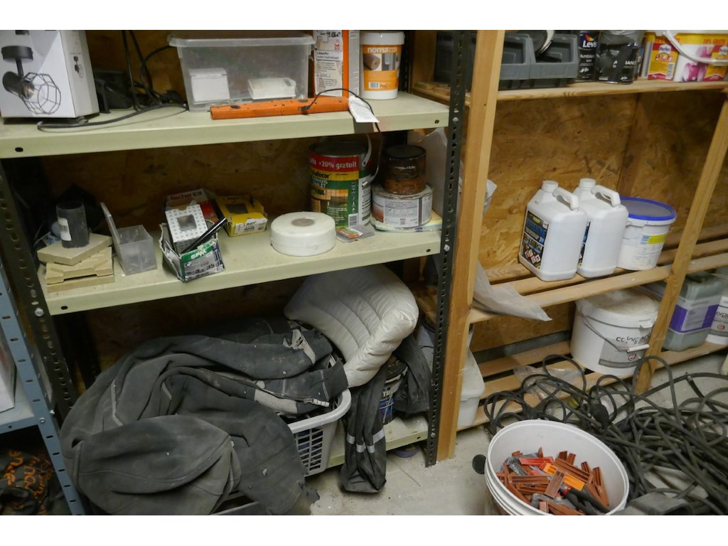 : diverse produkten - werf - lijmen - werkkledij - houtbeits - ehbo kist - stukadoor materiaal - emmers - enz...