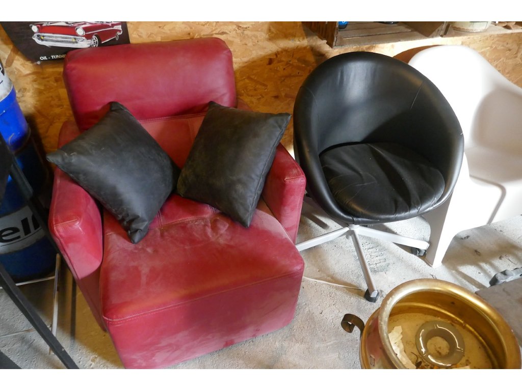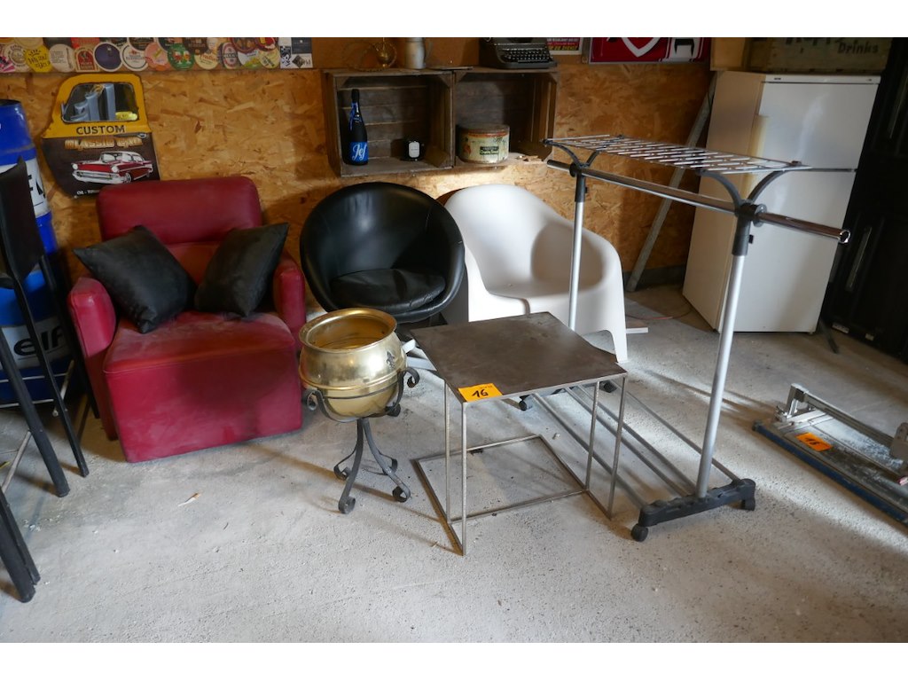 3 diverse vintage zetels + metalen bijzettafel - kledijrek - vintage asbak