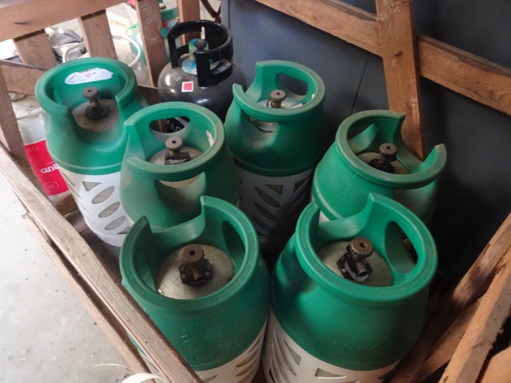 10 lege gasflessen