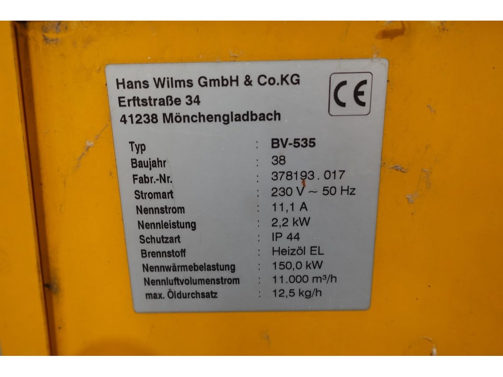 Type: BV-535, op mazout, 230V<br /> Locatie: B16