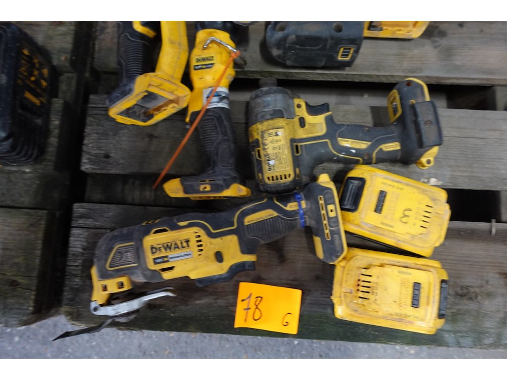 Vv accu cirkelzaag, accu slagschroefmachine, accu klopboorhamer, accu slijpschijf, accu werflicht, accu multitool, 2x batterij en lader<br /> locatie: Stockage