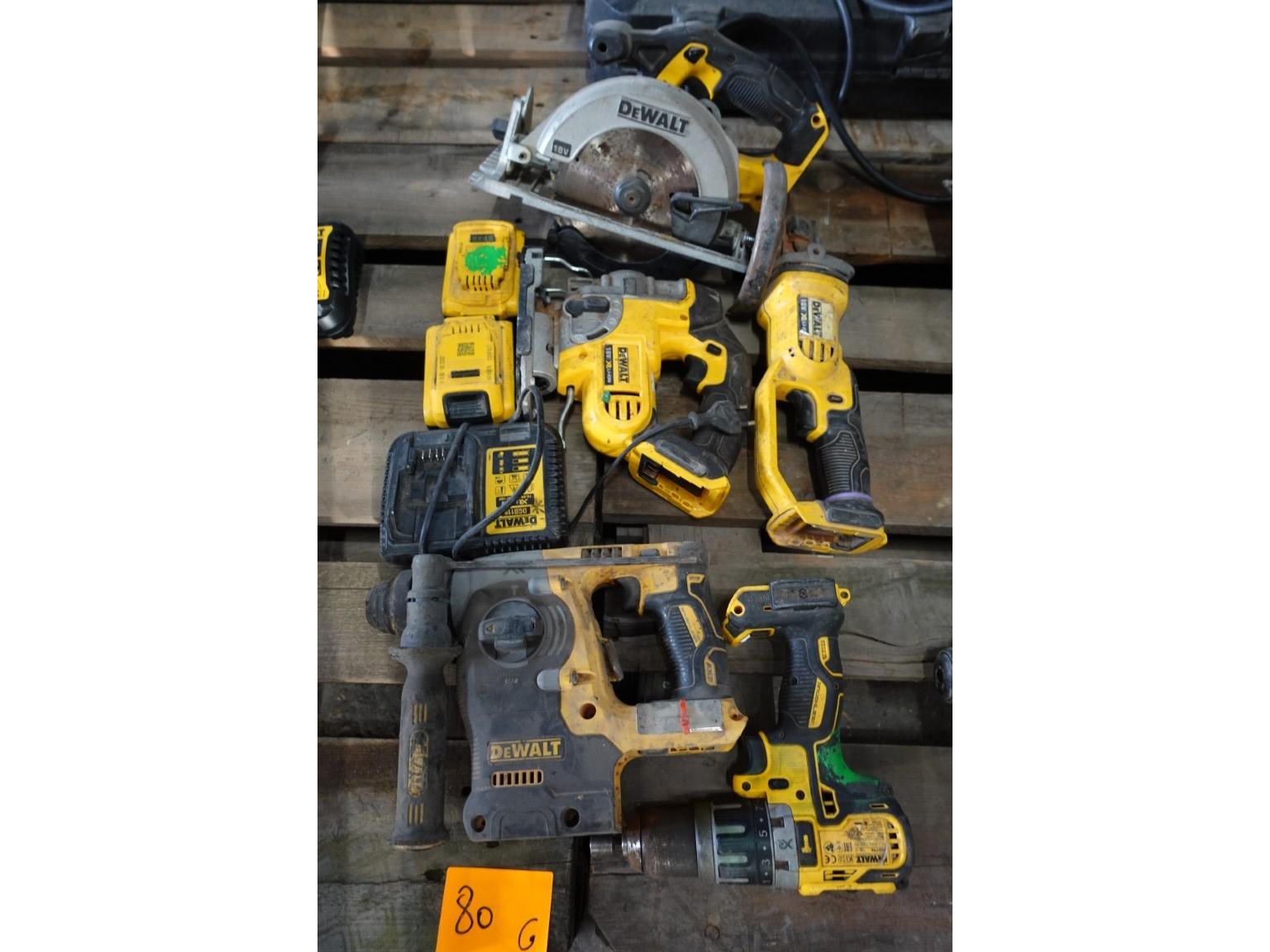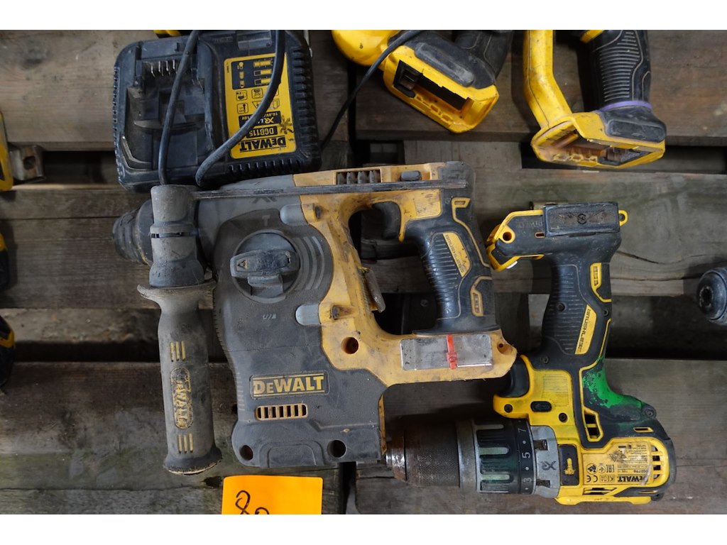 Vv accu cirkelzaag, accu decoupeerzaag, accu slijpschijfmachine, accu klopboorhamer, accu schroefboormachine, 2x accu & lader<br /> locatie: Stockage