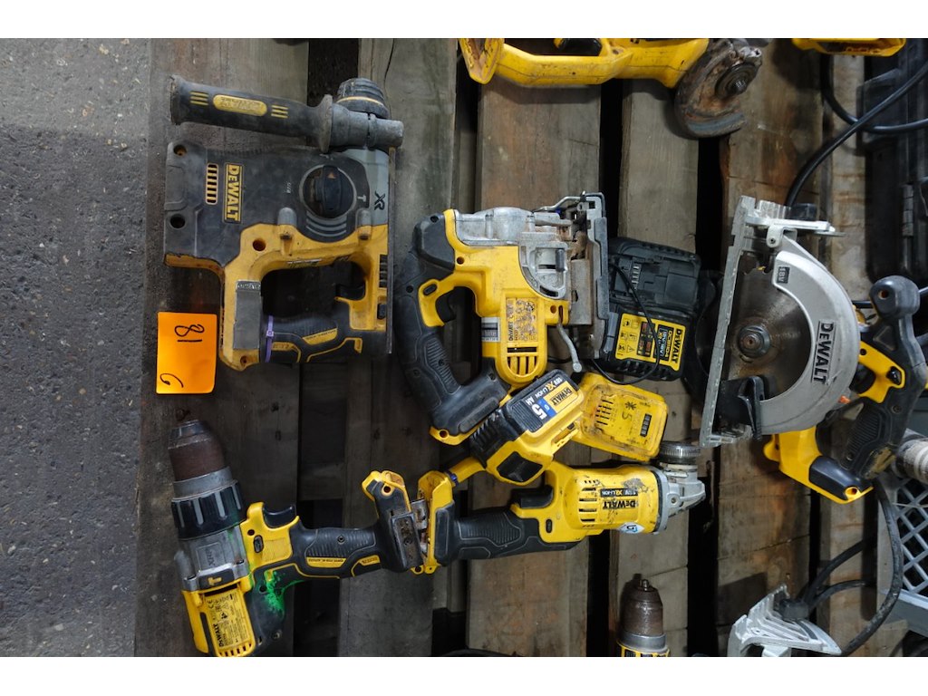 Vv accu cirkelzaag, accu decoupeerzaag, accu slijpschijfmachine, accu klopboorhamer, accu schroefboormachine, 2x accu & lader<br /> locatie: Stockage