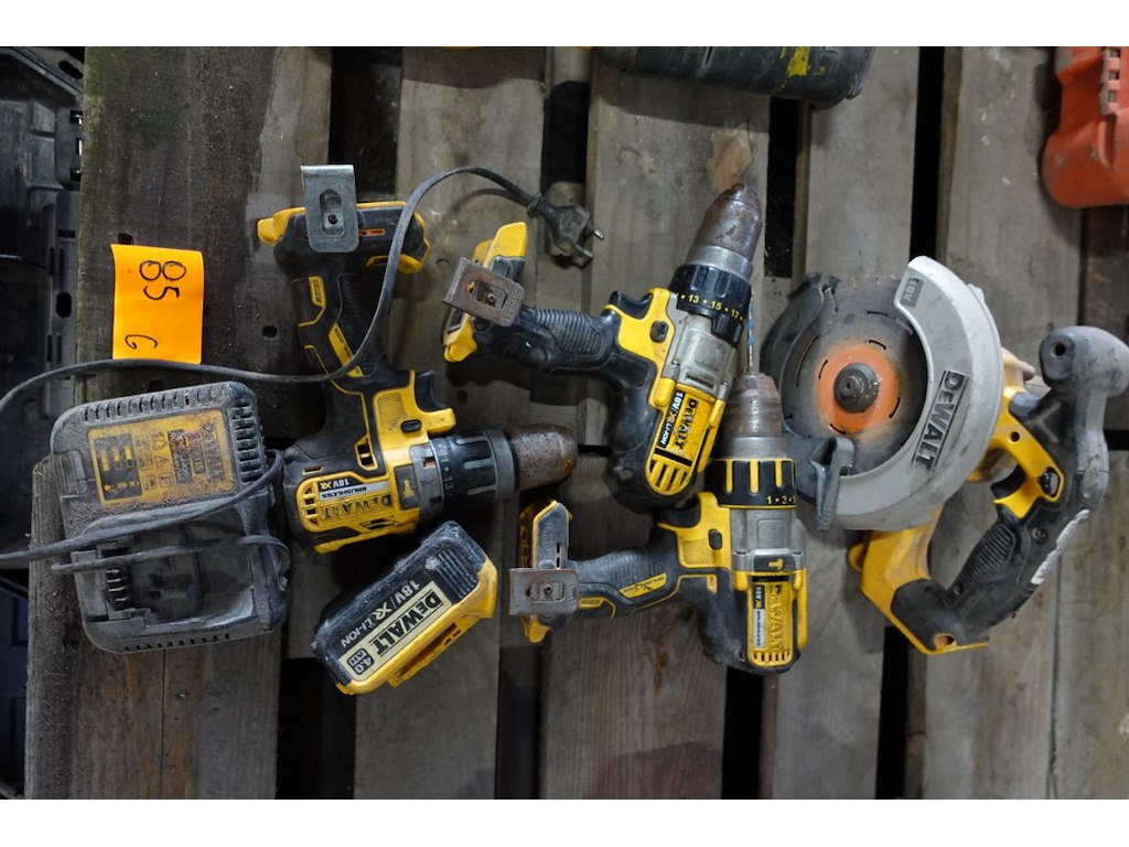 Vv accu cirkelzaag, 3x accu schroefboormachine, accu & lader<br /> locatie: Stockage