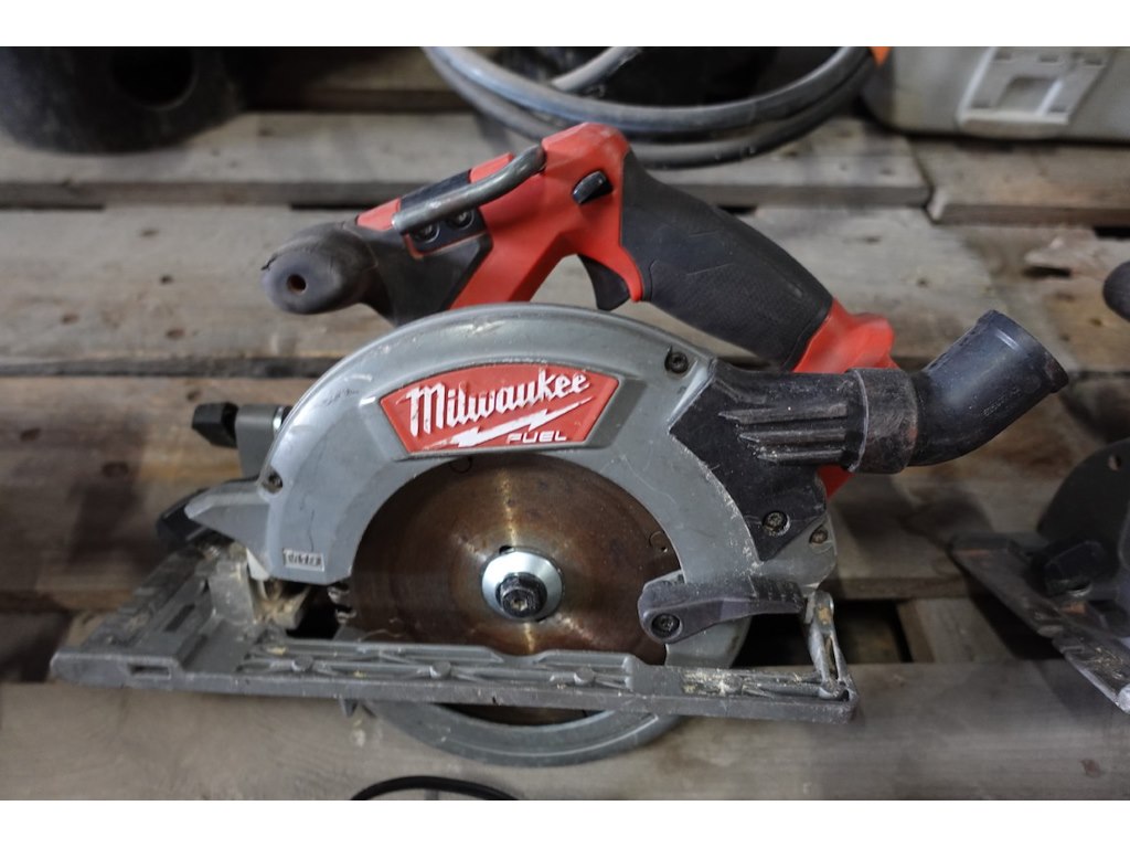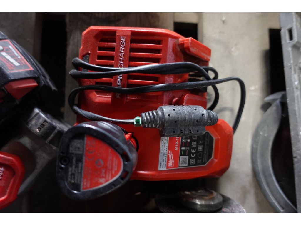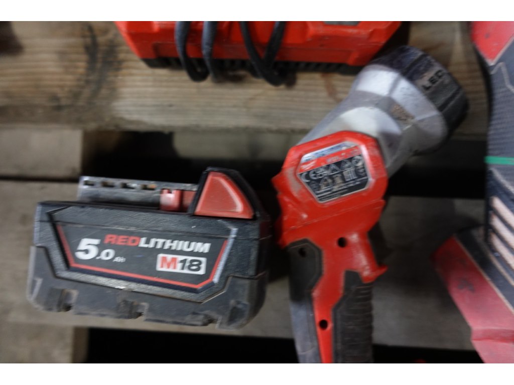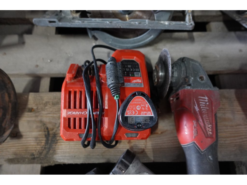 Vv accu cirkelzaag, accu slijpschijf, accu werflicht, 3x accu en lader<br /> locatie: Stockage